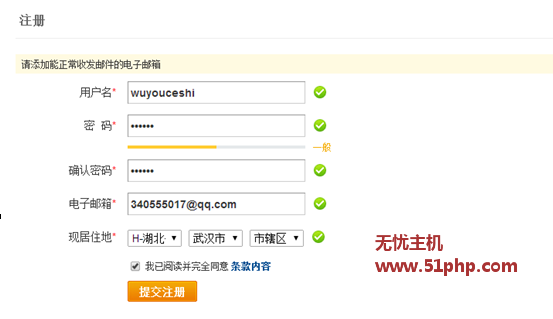 <dd class="ip"><div><input type="password" maxlength="$regmaxpwd" name="regpwd" id="regpwd" class="input"完成后将register.htm代码上传覆盖至public_html/template/wind中,下面是无忧小编修改实现后截图: